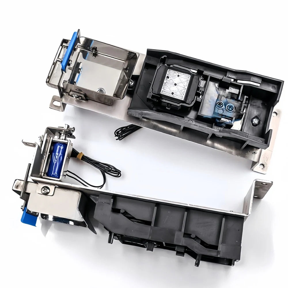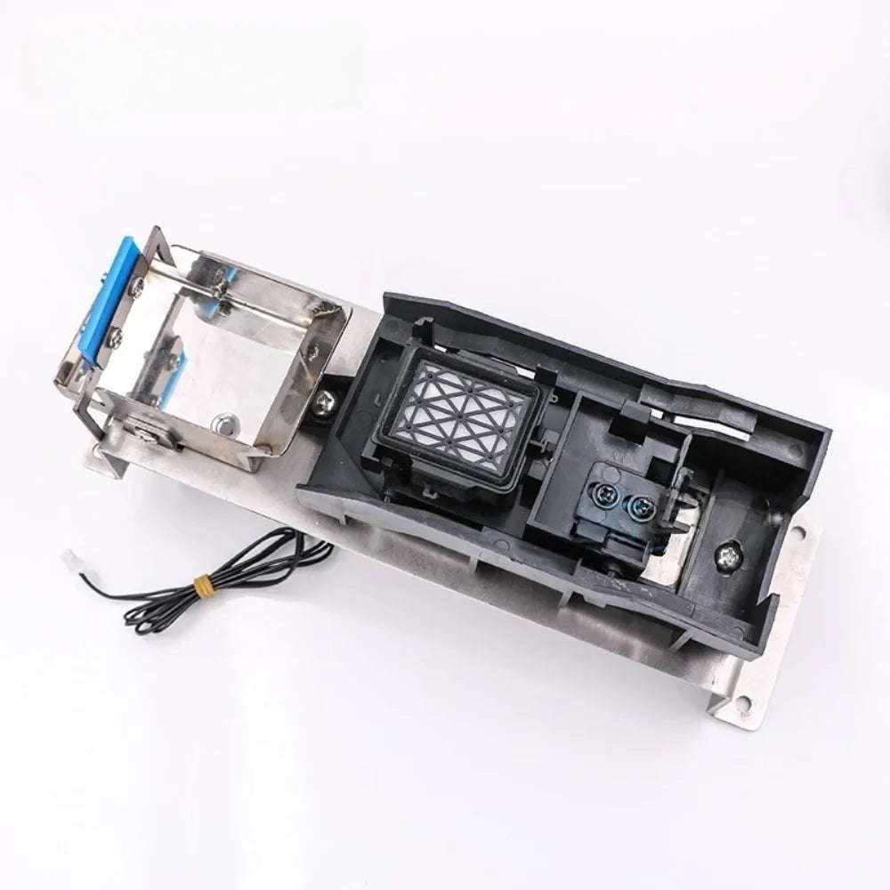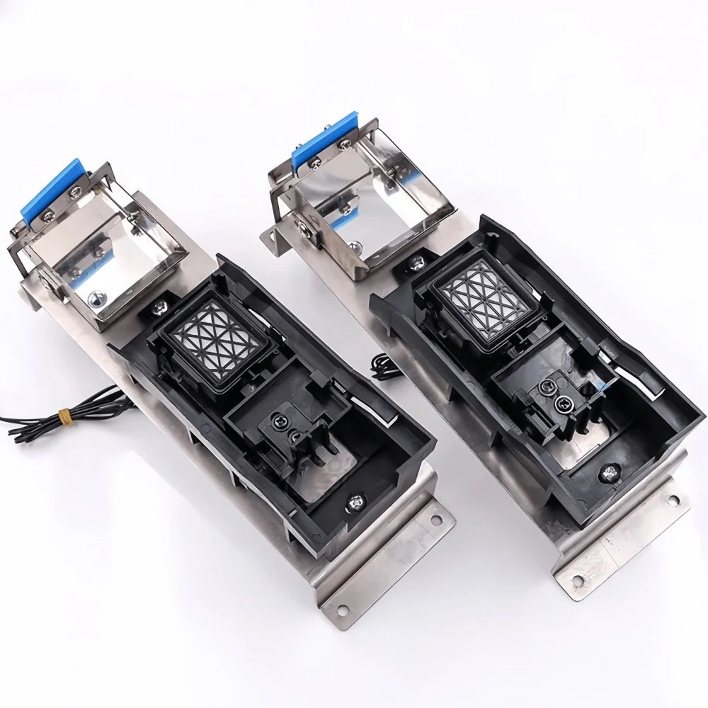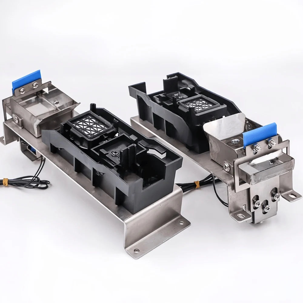 This professional capping station assembly is designed for DX5 and DX7 generation piezo printheads such as Epson DX5, DX7, and XP600. Engineered for use in eco-solvent and solvent-based photo printers, it includes a stainless steel mounting base, a durable ink wiper, and integrated waste ink drainage system.