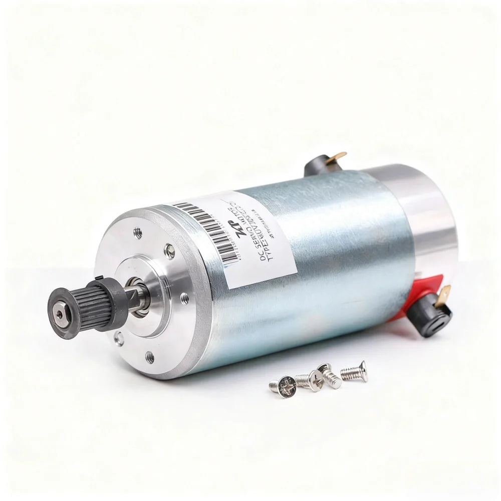 The motor uses a brushed DC core combined with a toothed pulley for belt transmission, allowing controlled torque delivery and smooth acceleration during bidirectional scanning cycles. The structure supports stable operation under continuous industrial workloads.