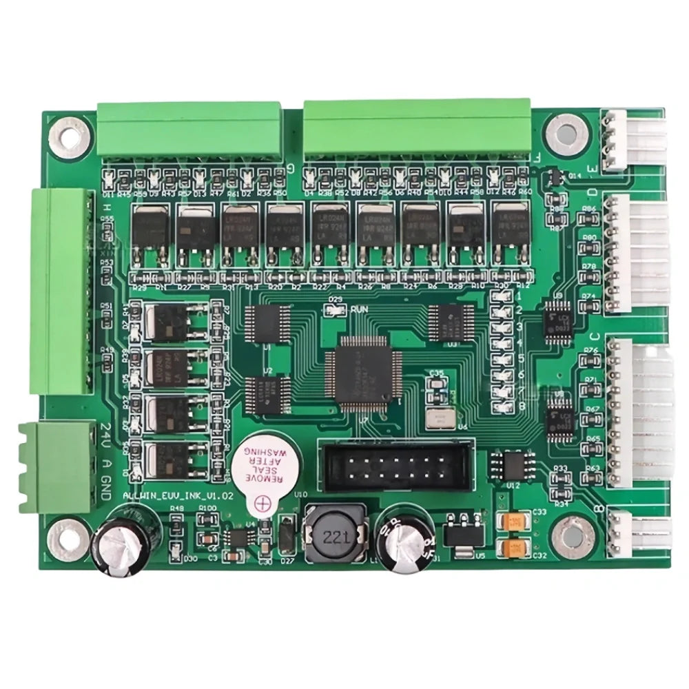 The 24V 8-Channel Ink Control Board is designed for UV printing systems to manage ink delivery and pressure stability. It supports multi-channel ink configurations and helps maintain consistent ink flow during long-term industrial printing. Multiple versions are available to match different printer layouts and system requirements.
